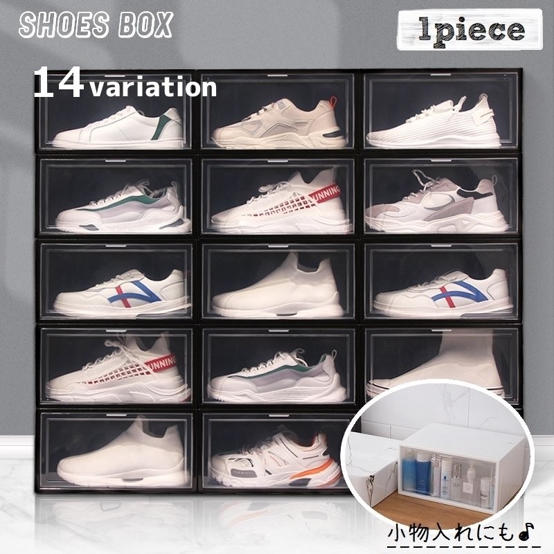 お気に入りのスニーカーなどを収納できるクリアなシューズボックスです。