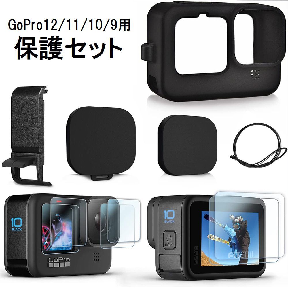 GoPro用シリコンケース レンズカバー ハンドストラップ 保護セット ゴープロ Hero 13 12 11 10 9 落下防止 傷防止 全面保護