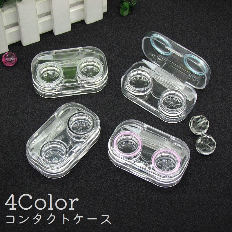 コンタクトレンズケース カラコンケース ピンセット付き 蓋一体型 持ち運び 携帯 クリア シンプル おしゃれ 普段使い お出かけ 旅行 外出 コンパク