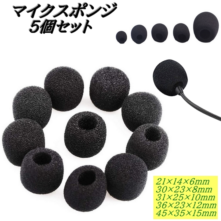 マイクスポンジ マイクカバー 5個セット 6mm 8mm 10mm 12mm 15mm 小型マイク ヘッドセットマイク ピンマイク 交換 取替 予備