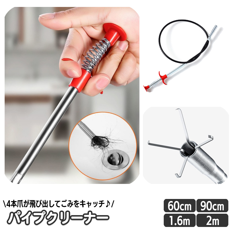 パイプクリーナー パイプブラシ 4本爪 ワイヤー 60cm 90cm 1.6m 2m ゴミ取り 排水口 配管 掃除 清掃 キャッチ つかむ 浴室 キッ