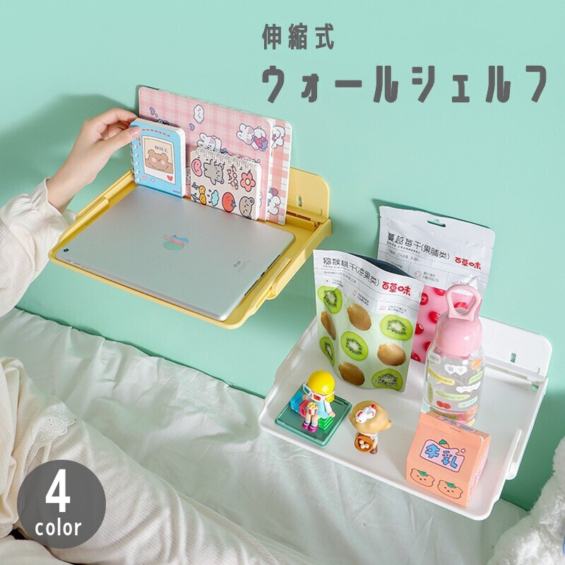 ウォールシェルフ 壁掛けラック 伸縮式 収納家具 穴あけ不要 工具不要 ベッドサイド デスク 勉強机 棚 かわいい おしゃれ 壁面収納 便利