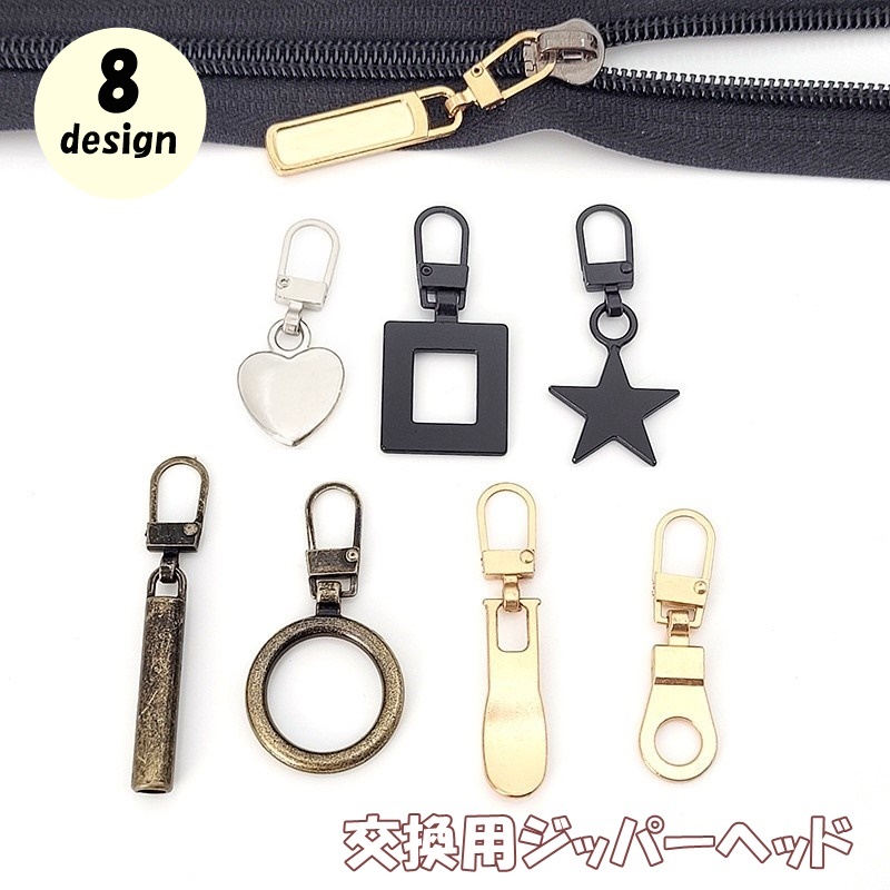 ジッパーヘッド ファスナー 引き手 ハート スター 星 スクエア サークル ラウンド チャック プルタブ 部品 パーツ 交換 修理 取り付け 簡単 付