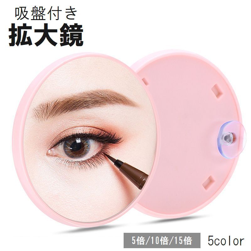 拡大鏡 ミラー 吸盤付き 5倍 10倍 15倍 丸型 円形 小型 小さい 化粧鏡 卓上 スキンケア アイメイク 毛穴 化粧直し つけまつげ 便利