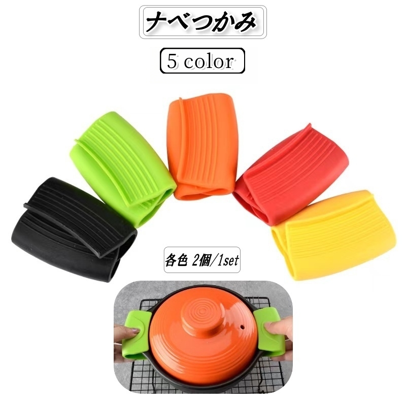 鍋つかみ ナベ なべ 2個セット ハンドクリップ 指先ミトン キッチンミトン シリコン製 水洗い可 滑り止め 掴みやすい 耐熱 防熱 断熱 単色 シン