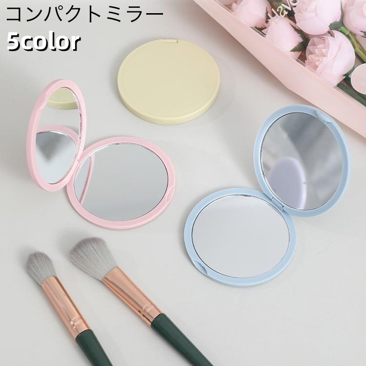 コンパクトミラー 手鏡 円形 丸型 持ち運び 2面鏡 携帯 折り畳み 化粧直し ハンドミラー 小型 薄型 シンプル