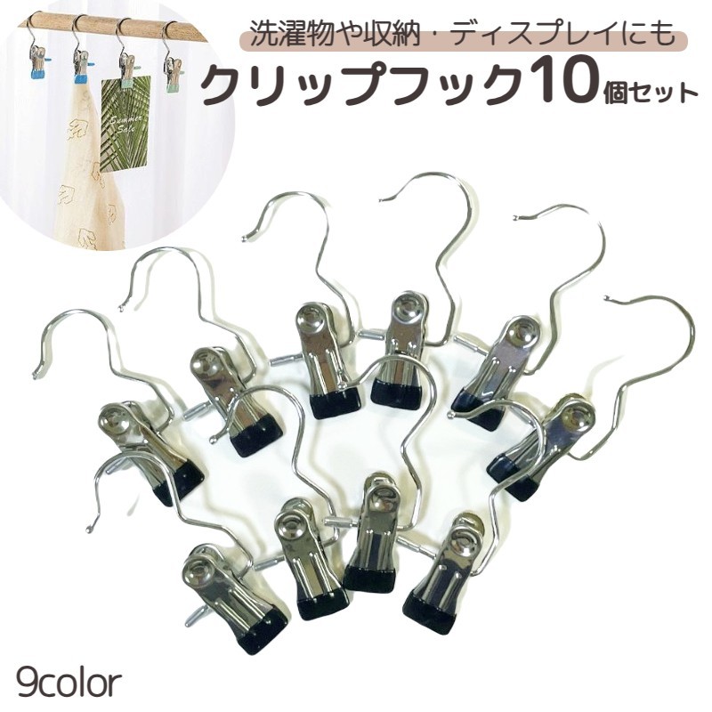 クリップフック 10個セット 洗濯バサミ ランドリーフック クリップハンガー 吊り下げ フック付き ハンギングクリップ 靴下 出張 旅行 お泊り 下着