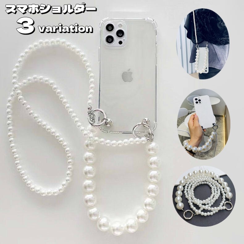 ネックストラップ スマホストラップ スマホショルダー ロング パール調 ハンドストラップ 2連 肩掛け 首掛け 携帯ストラップ フェイクパール 落下防