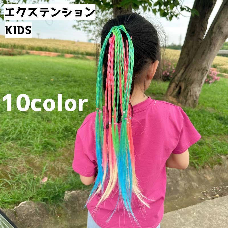 エクステ エクステンション ヘアゴム付き 三つ編み キッズ ジュニア 女の子 子供 つけ毛 ヘアアレンジ 簡単 グラデーション イメチェン おしゃれ