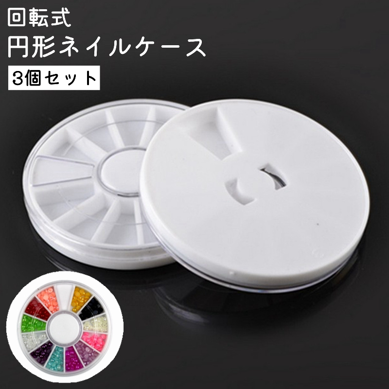 ネイルケース 3個セット ラインストーンケース 回転式 円形 丸型 12枠 シンプル セルフネイル パーツ 収納 ケース ジェルネイル用品