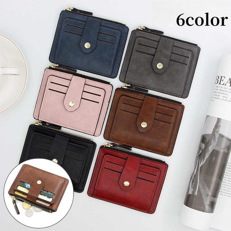 カードケース クレジットカードケース 薄型 カード入れ お札入れ フェイクレザー レザー調 ボタン ファスナー メンズ レディース ユニセックス シン