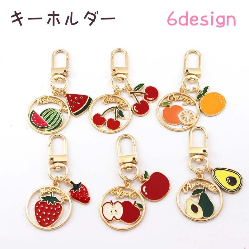 キーホルダー バッグチャーム フルーツキーホルダー チャーム バッグ小物 果物 金属製 おしゃれ かわいい オレンジ りんご いちご アボカド さくら