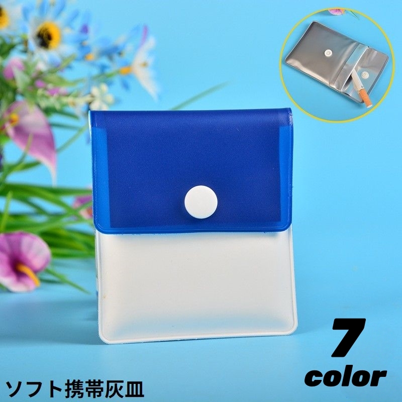 ソフト携帯灰皿 ハンディアッシュトレイ ポケット灰皿 吸い殻入れ 大容量 薄型 スクエア 無地 バイカラー シンプル 持ち運び