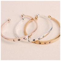 LOVEの文字が刻印されたシンプルなバングル。プレゼントに最適です。