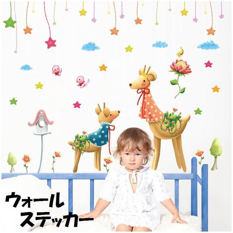 ウォールステッカー 壁紙シール ウォールシール 鹿 シカ 星 スター 鳥 バード 花 フラワー 雲 クラウド おしゃれ 可愛い かわいい おしゃれ 壁