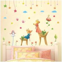 キュートな鹿の親子と星が部屋を飾るウォールステッカーです。