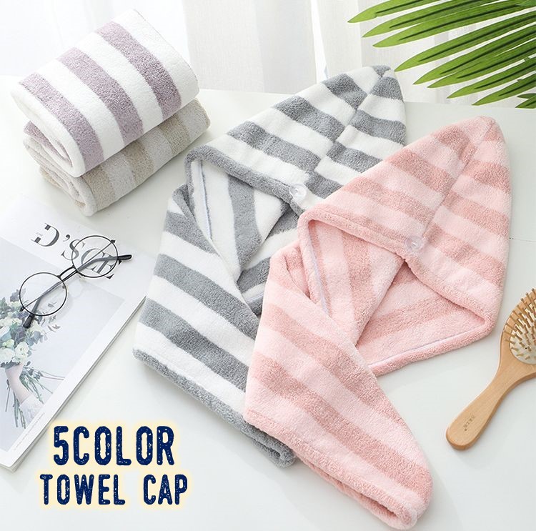 タオルキャップ ドライキャップ ヘアドライ タオル 便利 かわいい ふわふわ モコモコ 吸水性 乾燥 ボーダー シンプル マイクロファイバー 速乾 お