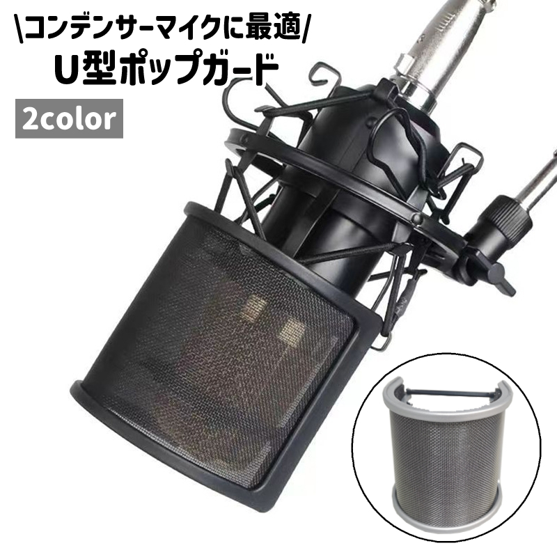 ポップガード ポップブロッカー マイクフィルター U型 コンデンサーマイク 保護 ノイズ防止 シンプル レコーディング 配信 録音 黒 グレー