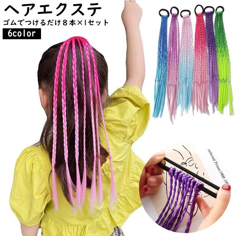 エクステ キッズ ヘアエクステンション ヘアゴム 三つ編み 子供 ダンス 仮装 ヘアアレンジ かわいい 8本セット 編み込み
