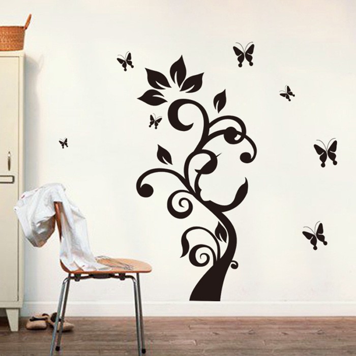 ウォールステッカー壁紙 シール 植物 木 壁紙 黒 ブラック 森 葉 かわいい 剥がせる 清楚 ちょうちょ 蝶 ウォールデコレーション 壁面装飾 オシ