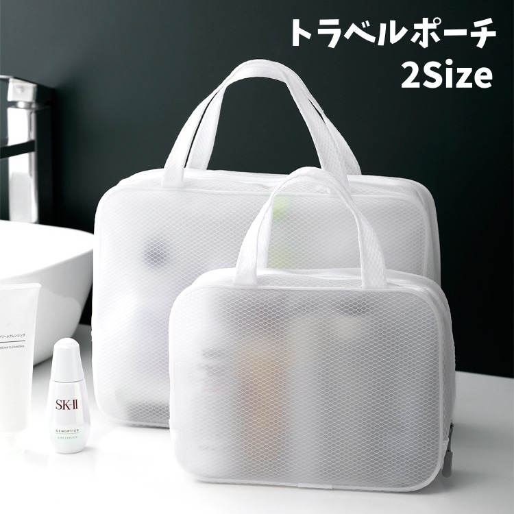 トラベルポーチ 化粧ポーチ 大容量 持ち手付き 半透明 メイクポーチ コスメポーチ 無地 旅行用品 普段使い 温泉 銭湯 プール 収納 整理 小物入れ