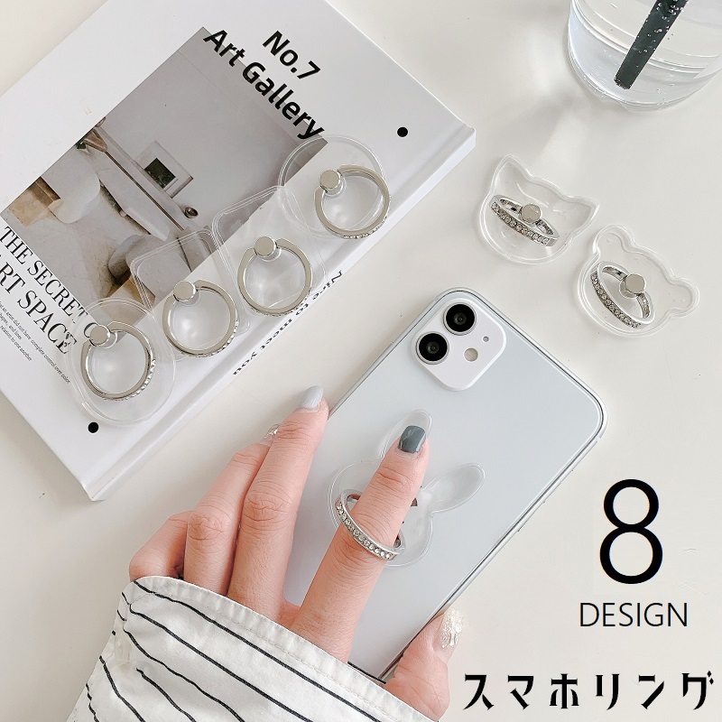 スマホリング ホールドリング スマホスタンド リングスタンド 落下防止 ラインストーン 透明 クリア リングホルダー クマ ネコ ウサギ 花 フラワー