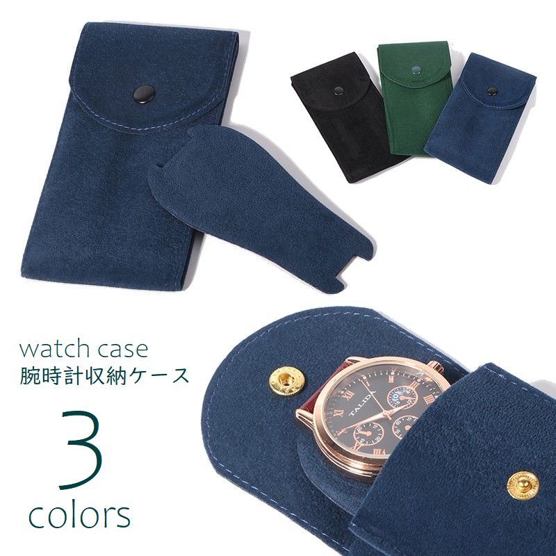 腕時計収納ケース ベロア調 腕時計ポーチ 腕時計ケース ウォッチバッグ フラップ スナップボタン 軽量 持ち運び 旅行 移動 傷予防 防汚対策 リスト