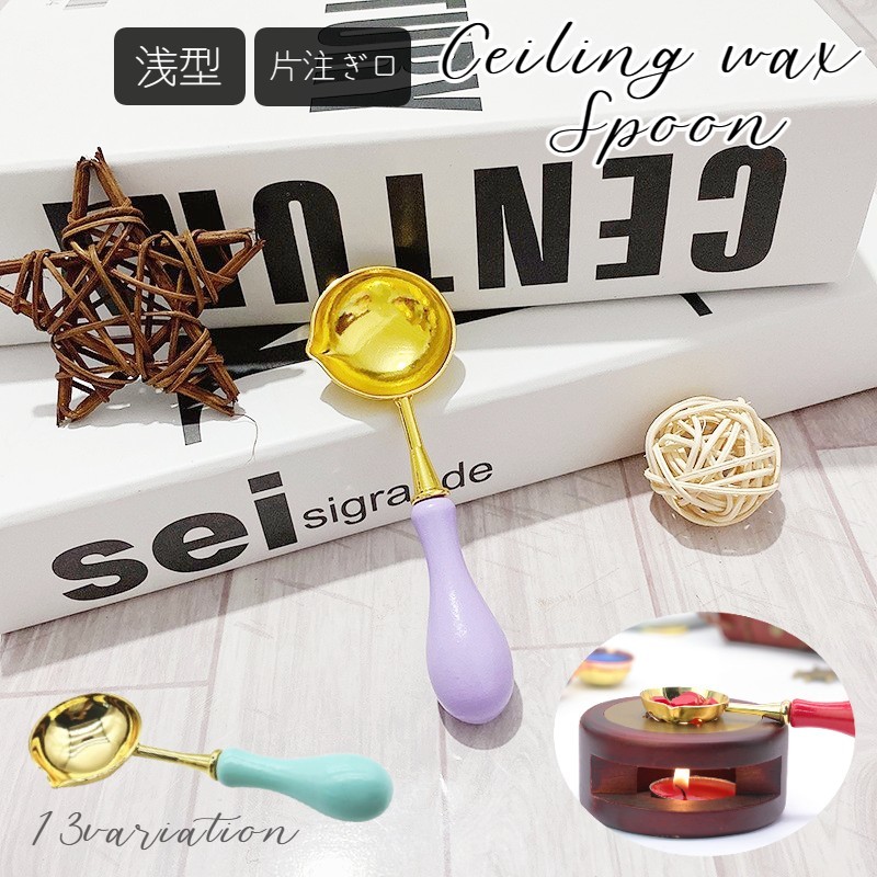 シーリングワックス用スプーン シーリングスタンプ用品 DIY 溶解 木製ハンドル 丸型 浅型 深型 封蝋 結婚式 招待状 手紙