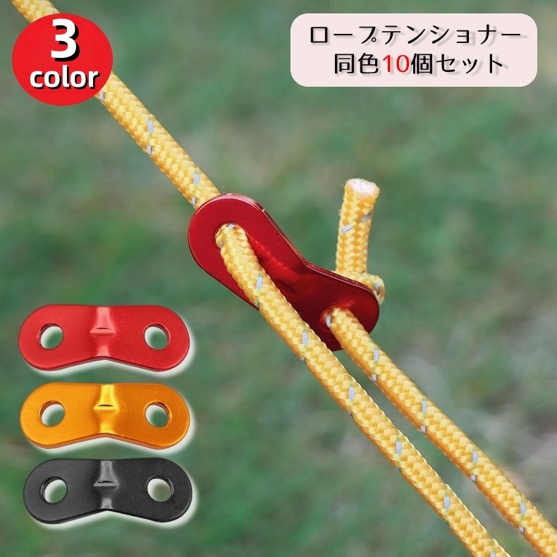 ロープテンショナー ロープアジャスター 自在金具 同色10個セット 固定金具 ロープ長調節金具 ガイラインライナー テント タープ キャンプ アウトド