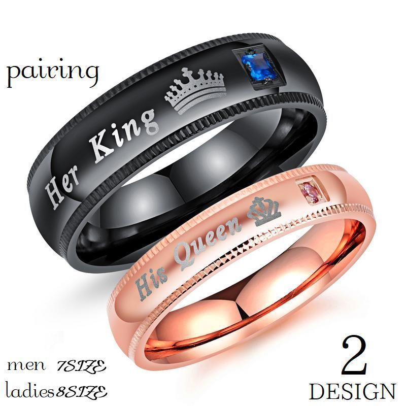 ペアリング リング 指輪 ペア お揃い おそろい カップル レディース メンズ 女性 男性 男女 英字 ラインストーン キング クイーン King Q