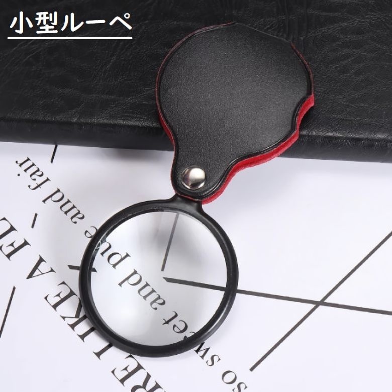 ルーペ 拡大鏡 虫眼鏡 虫めがね 小型 ミニルーペ 折り畳み 10倍 フェイクレザー 携帯 コンパクト 持ち歩き おしゃれ ケース一体型 便利 観察