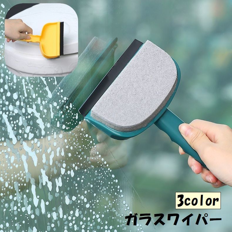 ガラスワイパー 2in1 水切りワイパー クリーニングブラシ スポンジ 掃除用具 清掃用品 無地 単色 シンプル かわいい おしゃれ ガラス トイレ