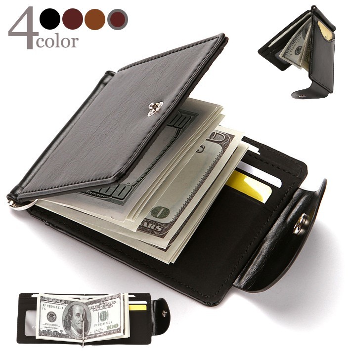財布 ウォレット マネークリップ パスケース カードケース カード入れ 名刺入れ フェイクレザー メンズ シンプル 軽量