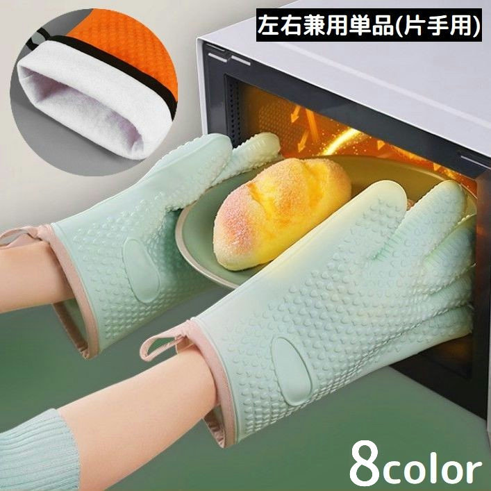 鍋つかみ オーブンミトン キッチングローブ 5本指手袋 左右兼用単品 シリコン 滑り止め 耐熱 断熱 防水 厚手 裏起毛 フック付き