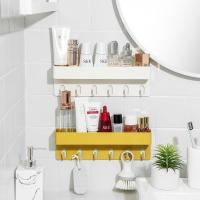 ウォールシェルフ ウォールラック 壁掛け収納 壁面収納 フック付き 収納用品 小物入れ インテリア 雑貨 貼り付け 洗面所 浴室 キッチン 台所 おし