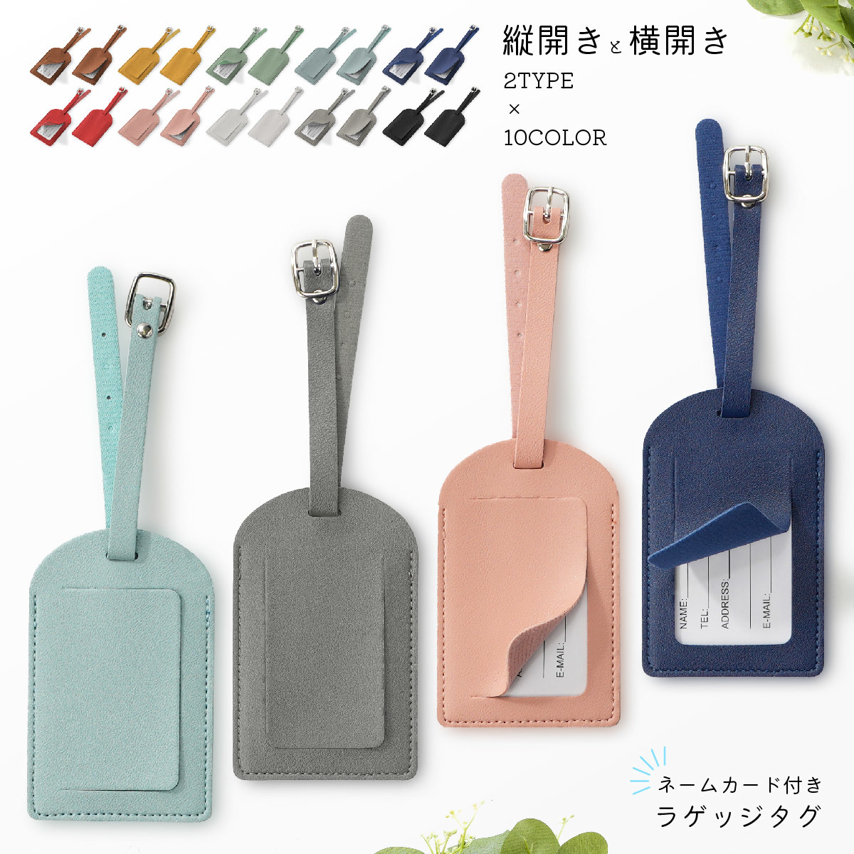 ネームタグ 目隠しカバー付き 縦開き 横開き 長方形 レザー調 ラゲッジタグ 名前タグ ネームホルダー 旅行用 トラベル用品 紛失防止 シンプル おし