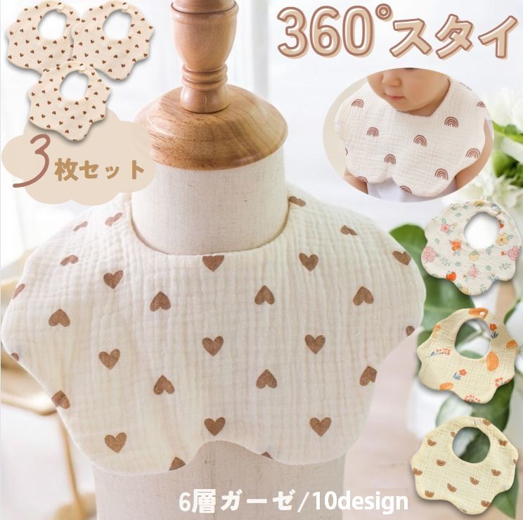 ベビースタイ 3枚セット ガーゼ スタイ ベビー 360度 スナップボタン よだれかけ ビブ 前掛け かわいい おしゃれ 赤ちゃん 女の子 男の子 調