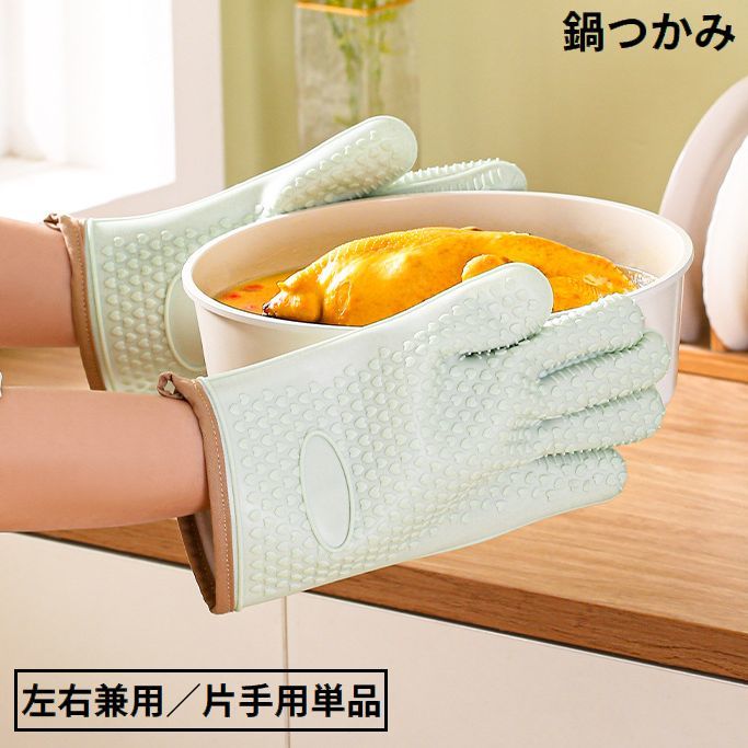 鍋つかみ オーブンミトン キッチングローブ 5本指手袋 左右兼用単品 シリコン 滑り止め 耐熱 断熱 防水 厚手 裏起毛 ハート柄