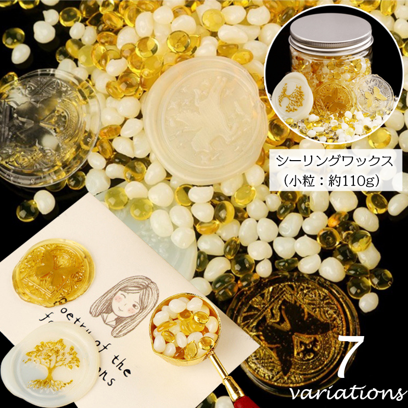 シーリングワックス 封蝋 ロウ 小粒 ワックスビーズ 約110g シーリングスタンプ用品 クリア 半透明 はちみつ色 ホワイト 招待状 結婚式 手紙