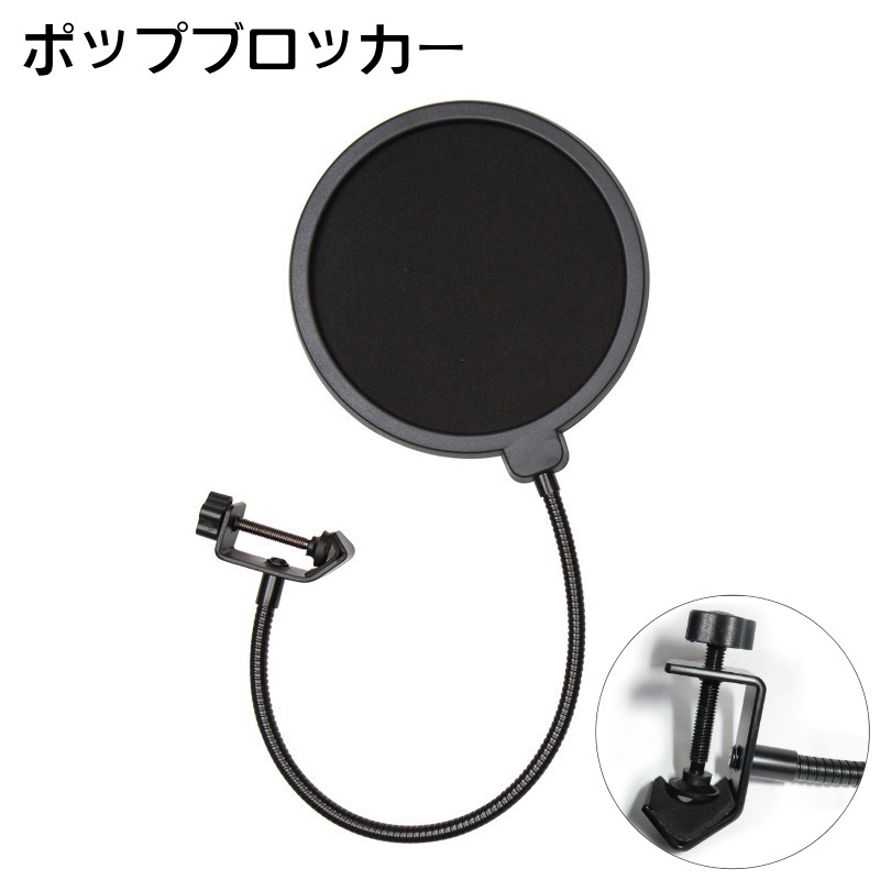 ポップブロッカー ポップガード 音響機器 PA機器 レコーディング 録音機器 クランプ式 ノイズ防止 角度調節可 固定 雑音軽減 マイクフィルタ