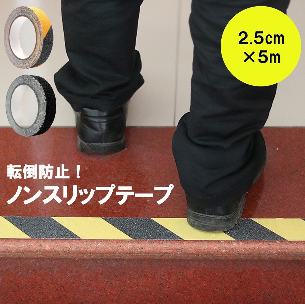 ノンスリップテープ 滑り止めテープ 警告テープ 階段テープ 2.5cm幅 粘着テープ ざらざら 事故防止 危険表示 注意喚起 斜線 安全対策 屋内 屋