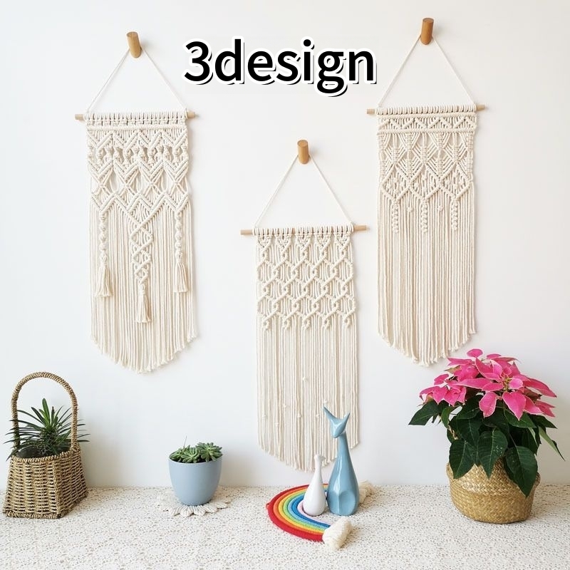 タペストリー インテリア雑貨 ウォールデコレーション 壁飾り 吊り下げ 壁掛け ハンキング マクラメ編み フリンジ ロープ 縄 単色 ナチュラル おし