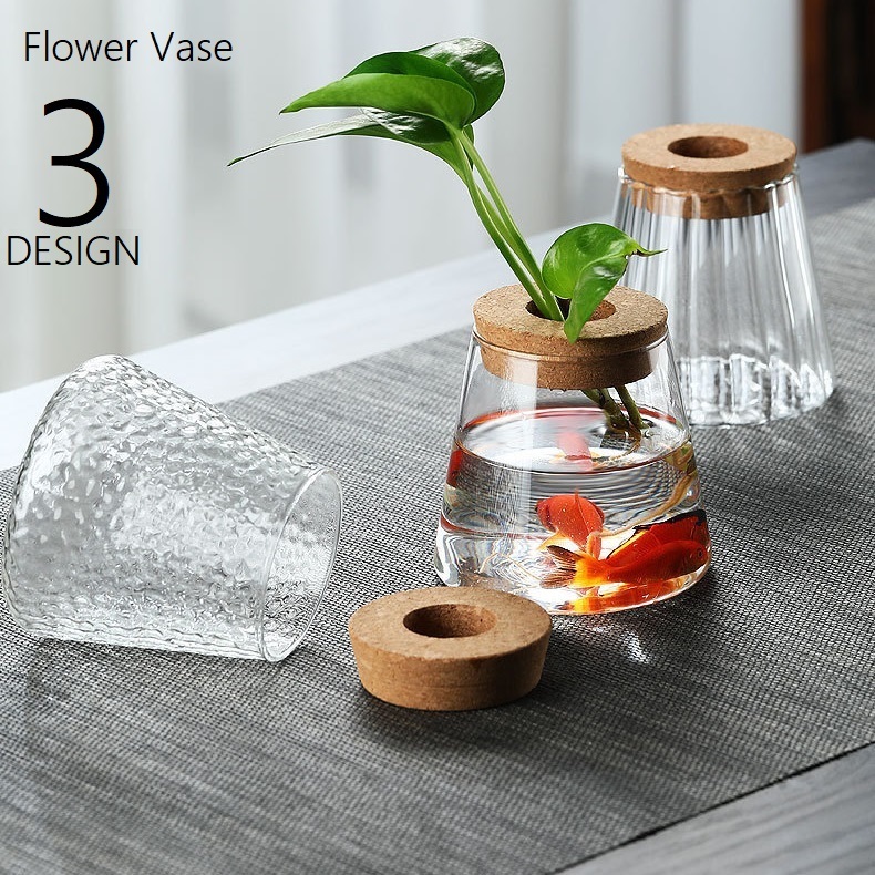 花瓶 花びん フラワーベース 花器 装飾 一輪挿し コルク蓋 卓上 置き型 ガラス製 クリア スケルトン インテリア小物 雑貨 透明 凹凸 三角 三角