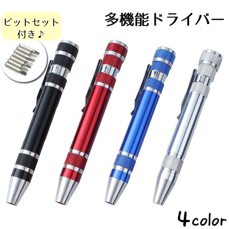 手動ドライバー ビットセット付き 8本 手廻し 内部収納 コンパクト設計 多機能 プラスドライバー マイナスドライバー 工具 修理 電池交換 精密 D