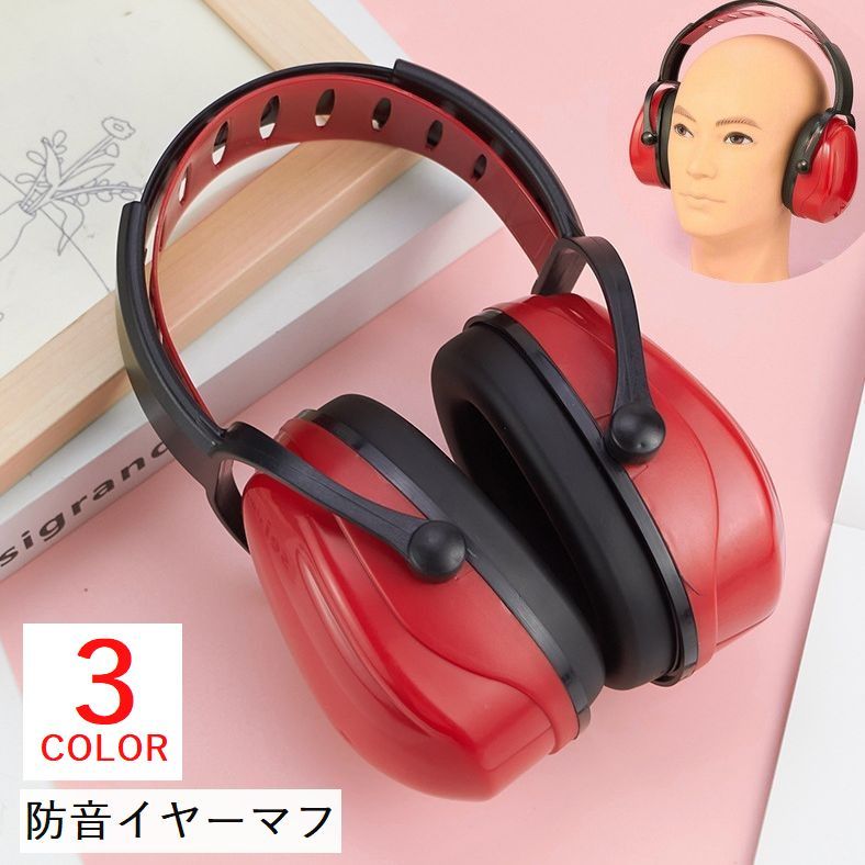 イヤーマフ 防音 耳当て 男女兼用 大人 保護用品 調節可能 騒音 遮音 集中 勉強 睡眠 シンプル 無地 おしゃれ カッコイイ 黒 赤 蛍光グリーン