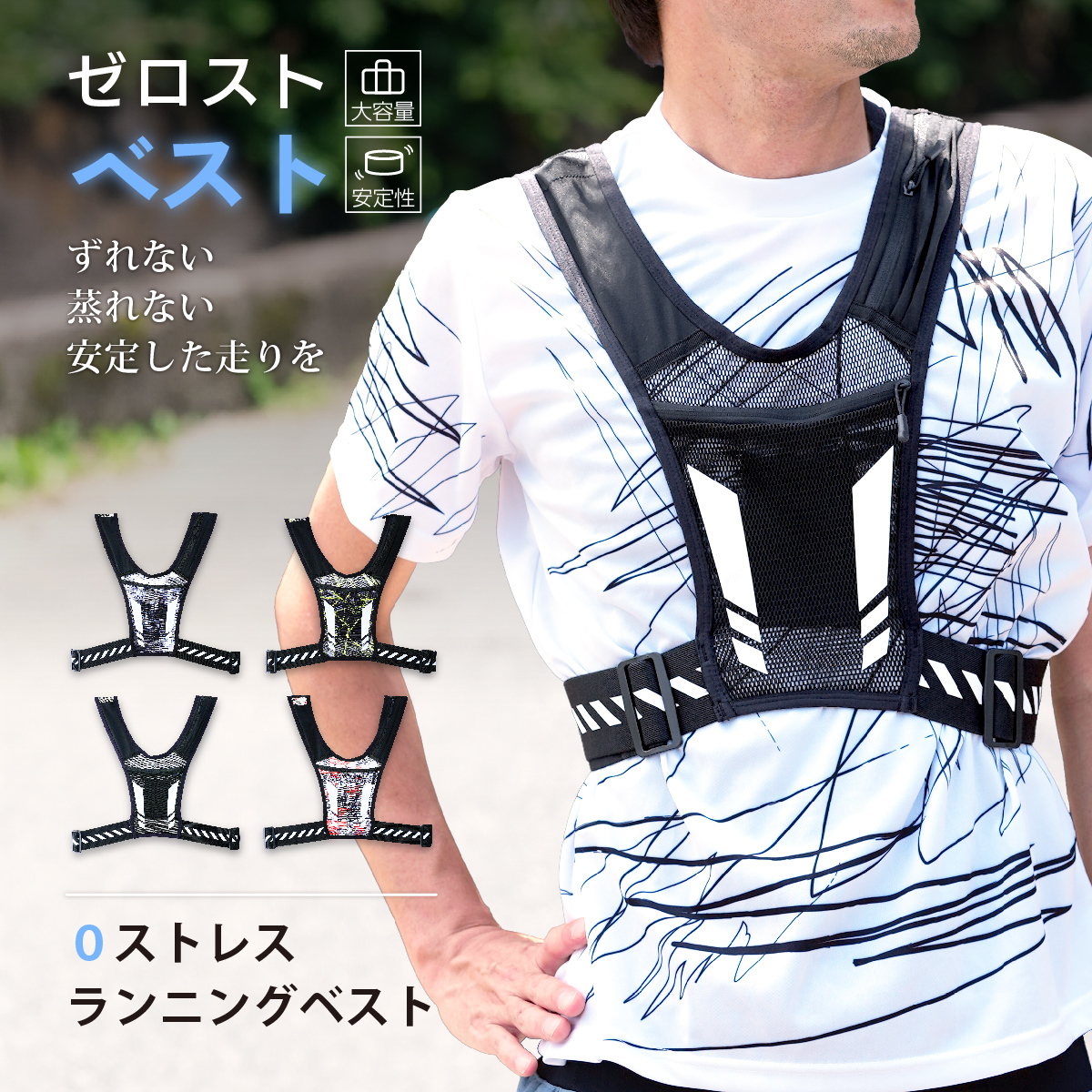 ランニグポーチ ランニングベスト チェストバッグ 反射テープ ゴム メッシュ 通気性 ポケット ファスナー 収納 ボトルホルダー 小物入れ スポーツ用