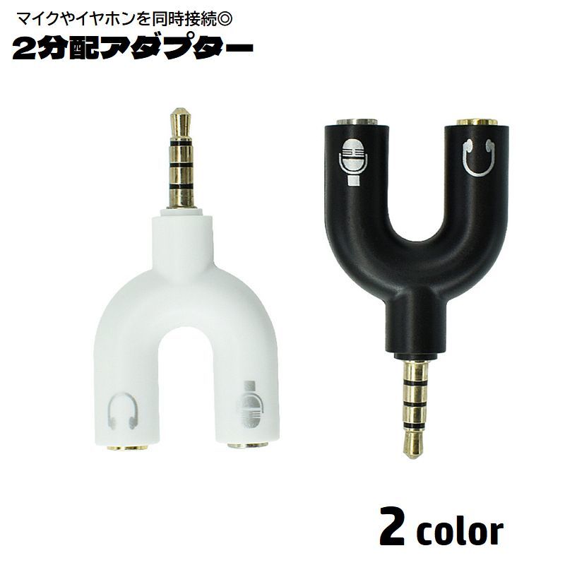 2分配アダプター U型 Y型 3.5mm 二股 変換アダプタ 分岐 イヤホン ヘッドフォン マイク オーディオ用アクセサリー イヤホンジャック スプリ