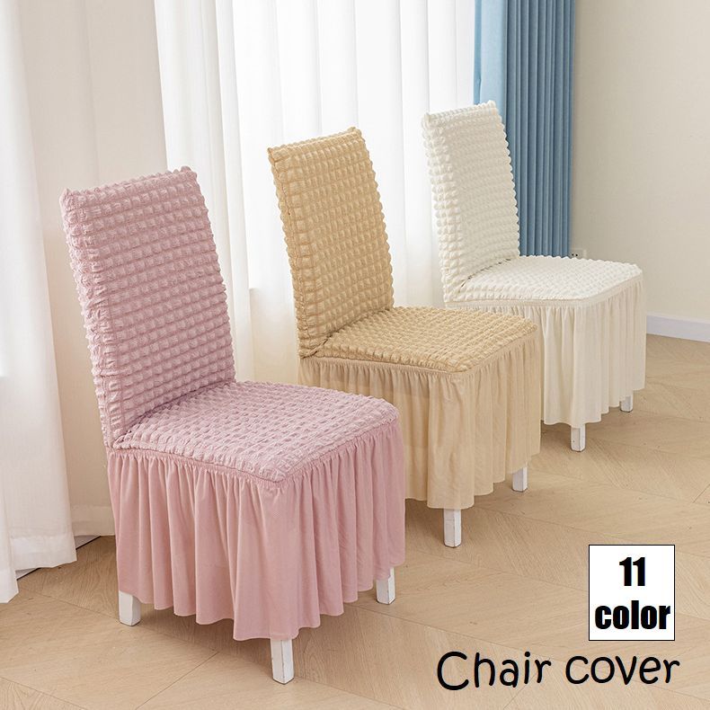 チェアカバー 椅子カバー イスカバー インテリア用品 フリル ポップコーン生地 無地 単色 シンプル かわいい おしゃれ 背もたれ フルカバー キズ防