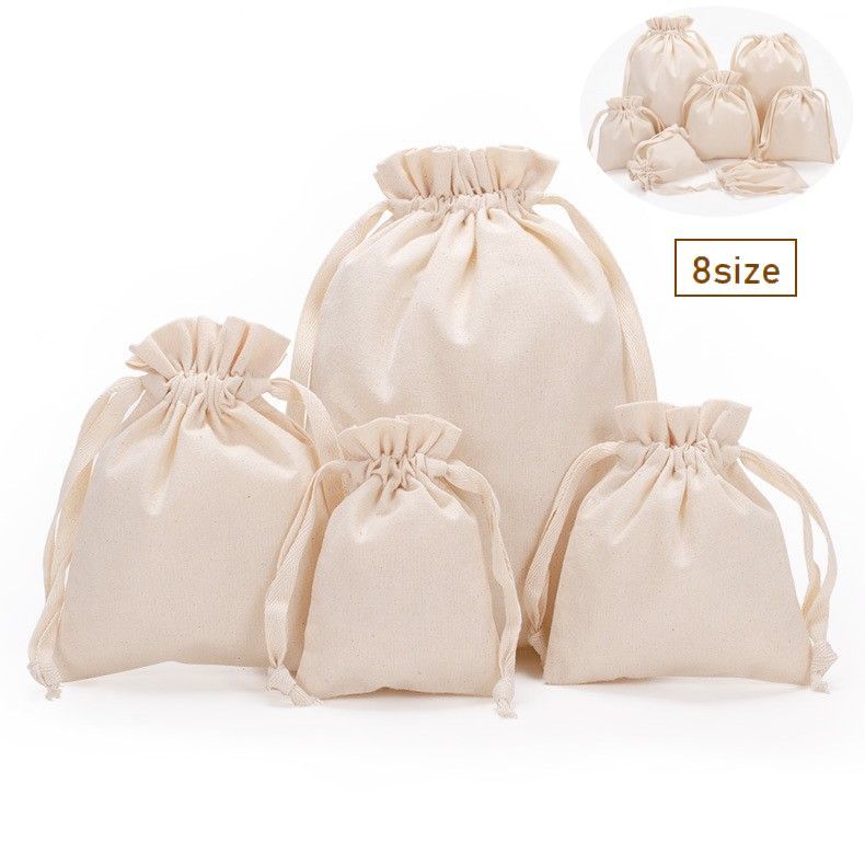 サイズ展開豊富なナチュラルな生成り色の巾着袋です。