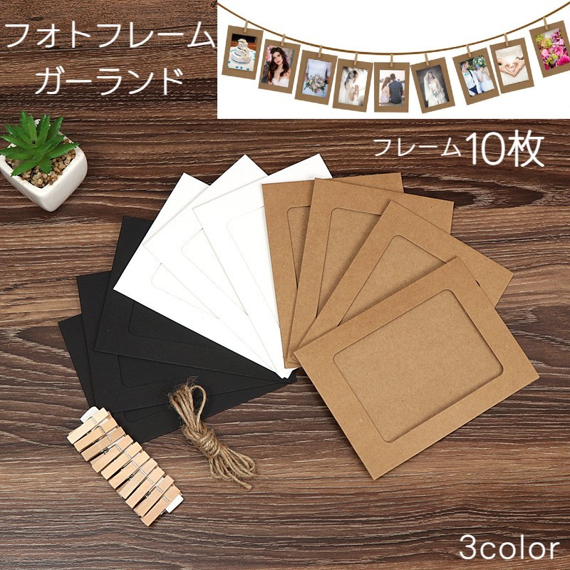 フォトフレームガーランド 10枚 写真 クラフト 装飾 飾り付け デコレーション パーティーグッズ お祝い 誕生日 インテリア ナチュラル 未ざらし